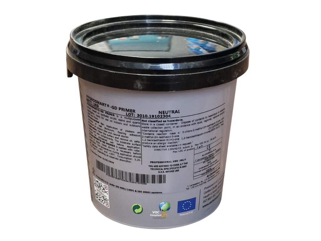 HYGROSMART®-GD PRIMER je víceúčelová penetrace na bázi syntetických akrylových pryskyřic s křemenným agregátem, připravený k použití na stěny i podlahy v interiéru i exteriéru.